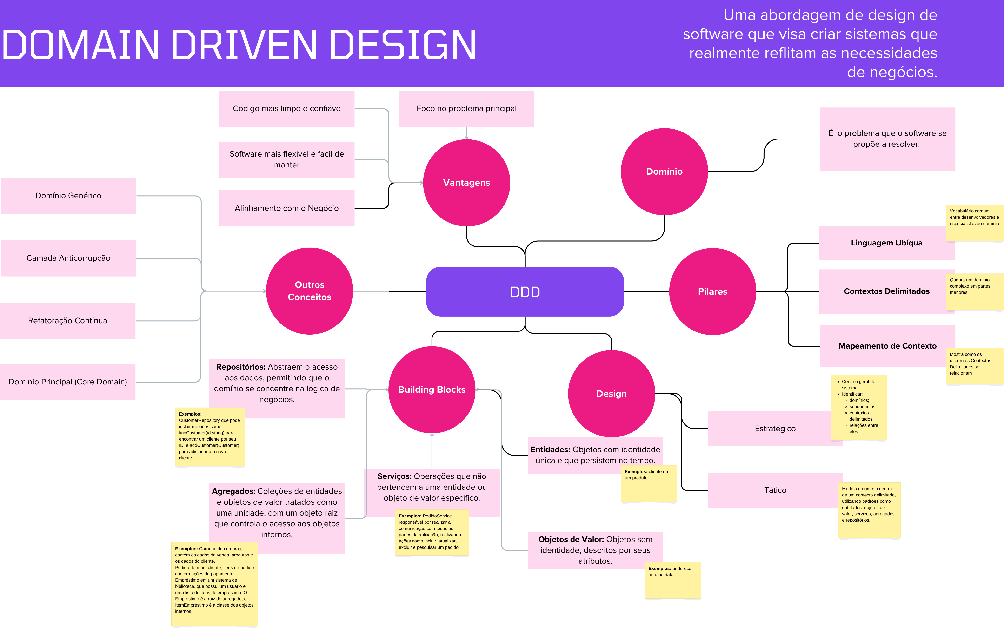 Em DDD, o domínio é o “coração” do negócio, o problema que o software se propõe a resolver. Ele engloba todos os processos, regras e peculiaridades do negócio. Por exemplo, em um sistema bancário, o domínio pode incluir áreas como investimentos, cartões, contas bancárias e empréstimos.